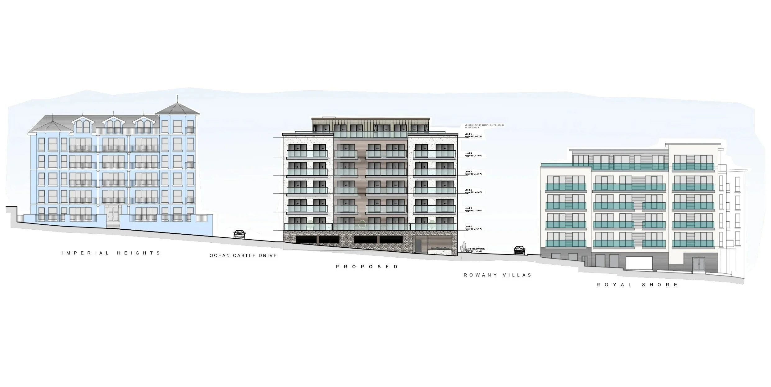 At the core of the project is a context-driven architectural response, led by the design team here at Cornerstone Architects, who developed a design shaped by the coastal setting, the sloping topography, and the aesthetic of neighboring buildings. This approach ensures that Ocean Castle not only provides much-needed new homes but also strengthens and completes the existing promenade streetscape.
