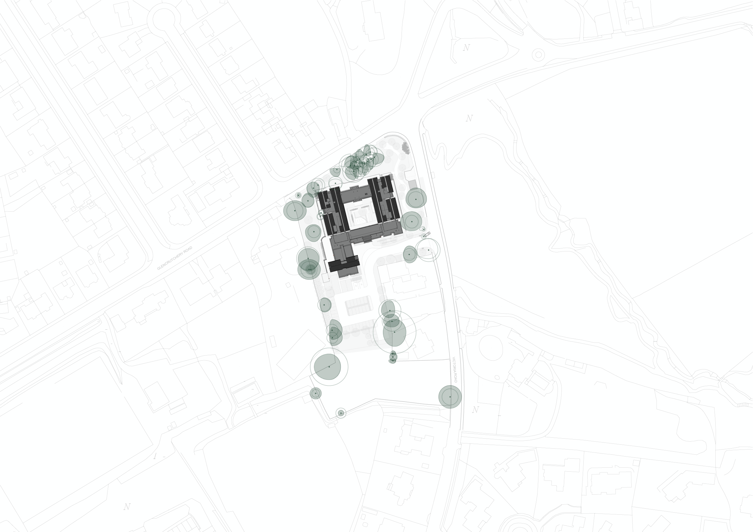 Carefully integrated into the natural topography, this new-build care home and community hub balances scale, form, and context. Composed of smaller linked elements, the building combines pitched roofs reflecting local vernacular with contemporary flat-roofed forms. Organised around a private central courtyard, it incudes clusters of 15 care suites include communal facilities, while top-floor accommodation is dedicated to dementia care, designed to the Dementia Household Stirling Gold Standard. The design harmonises with the surrounding landscape and neighbouring buildings, referencing tradition while presenting a contemporary style.